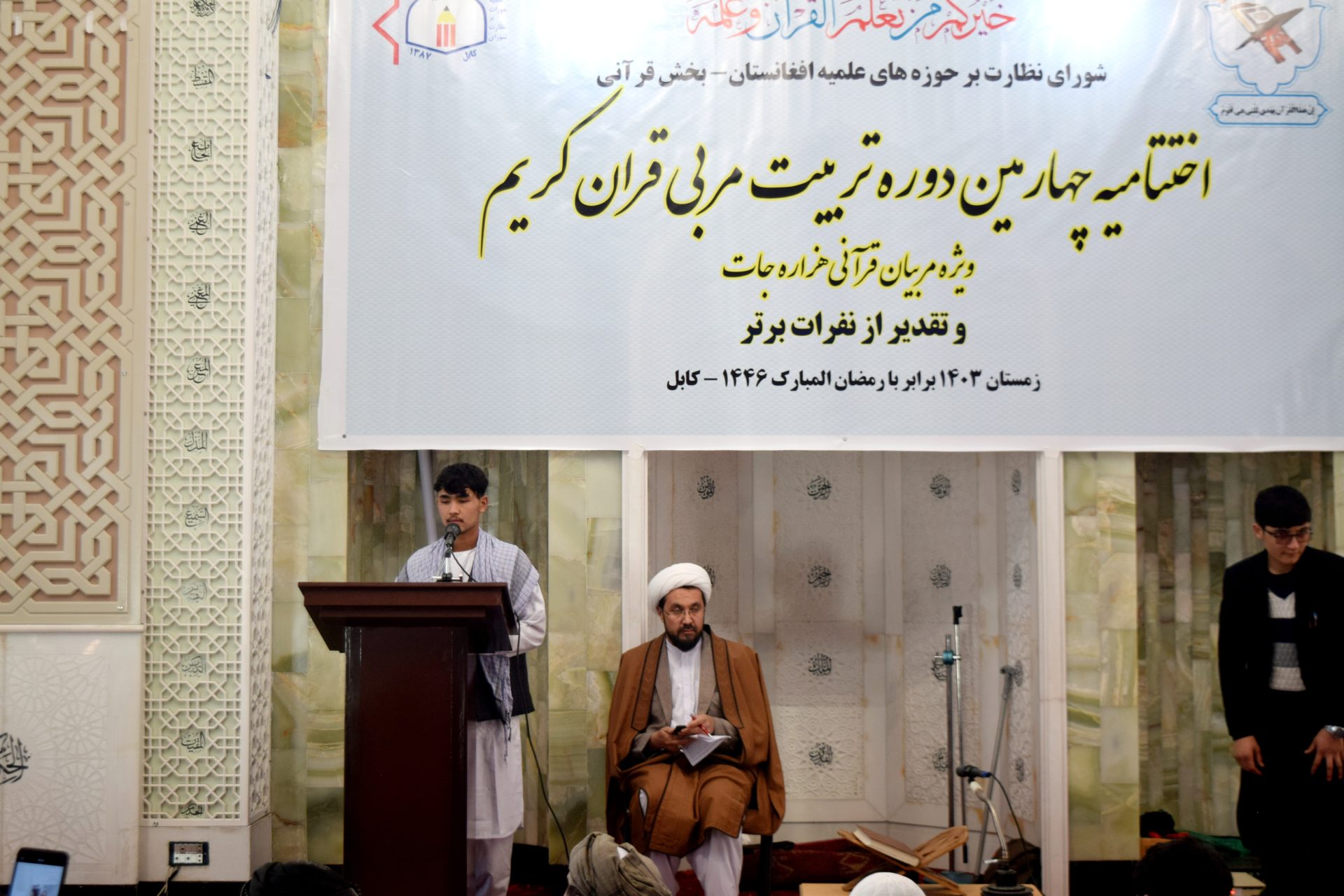 چهارمین دوره تربیت مربی قرآن کریم به کوشش بخش قرآنی شورای نظارت و ویژه مربیان قرآنی حوزههای علمیه سراسر هزارهجات برگزار شد. شرکتکنندگان در این دوره از آغاز ماه مبارک رمضان تا آخرین جمعه این ماه پربرکت در مدرسه علمیه مدینه العلم مرحوم آیت الله تقدسی در کابل مستقر بودند و هر روز به مدت هشت ساعت از کلاسهای آموزشی متنوع و اساتید بین المللی و صاحب تألیف قرآنی افغانستان استفاده کردند.
