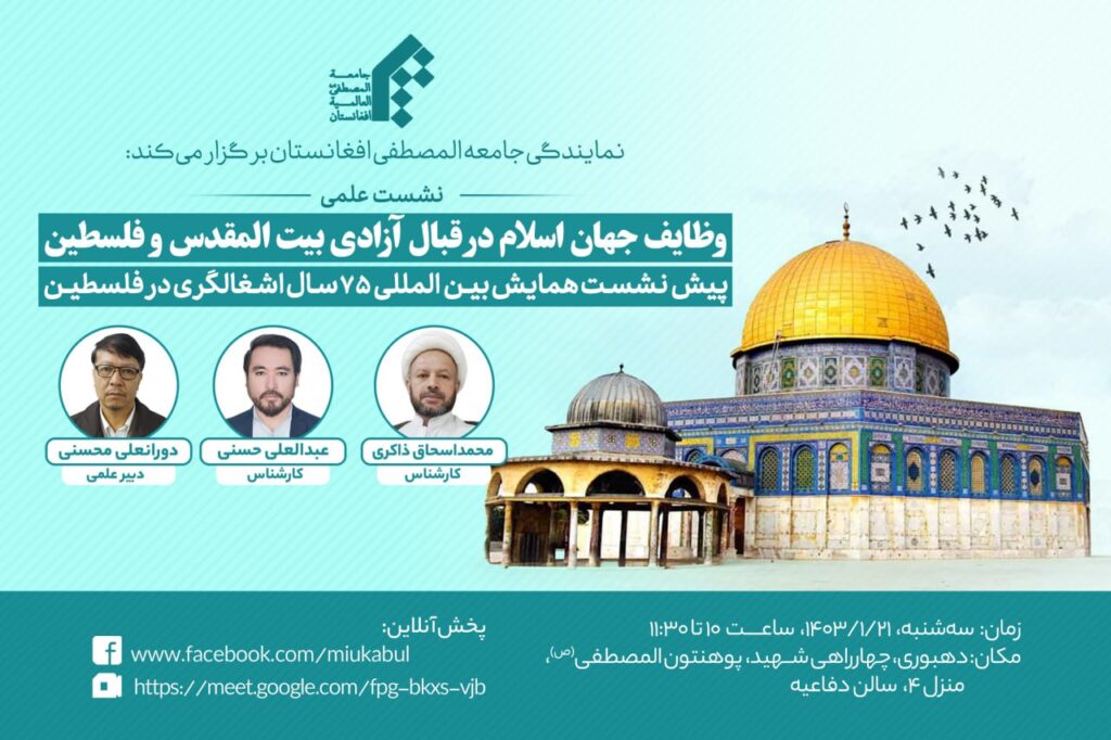 نشست علمی وظایف جهان اسلام در قبال آزادی بیت المقدس و فلسطین.